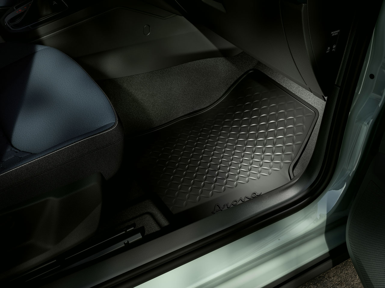 Alfombrilla de goma para mayor protección contra suciedad y líquidos. Juego de 4 piezas. Personalizado con el nombre del modelo. Para vehículo guía izquierda (LHD). Alfombrilla conductor y acompañante dispone de sistema de fijación.